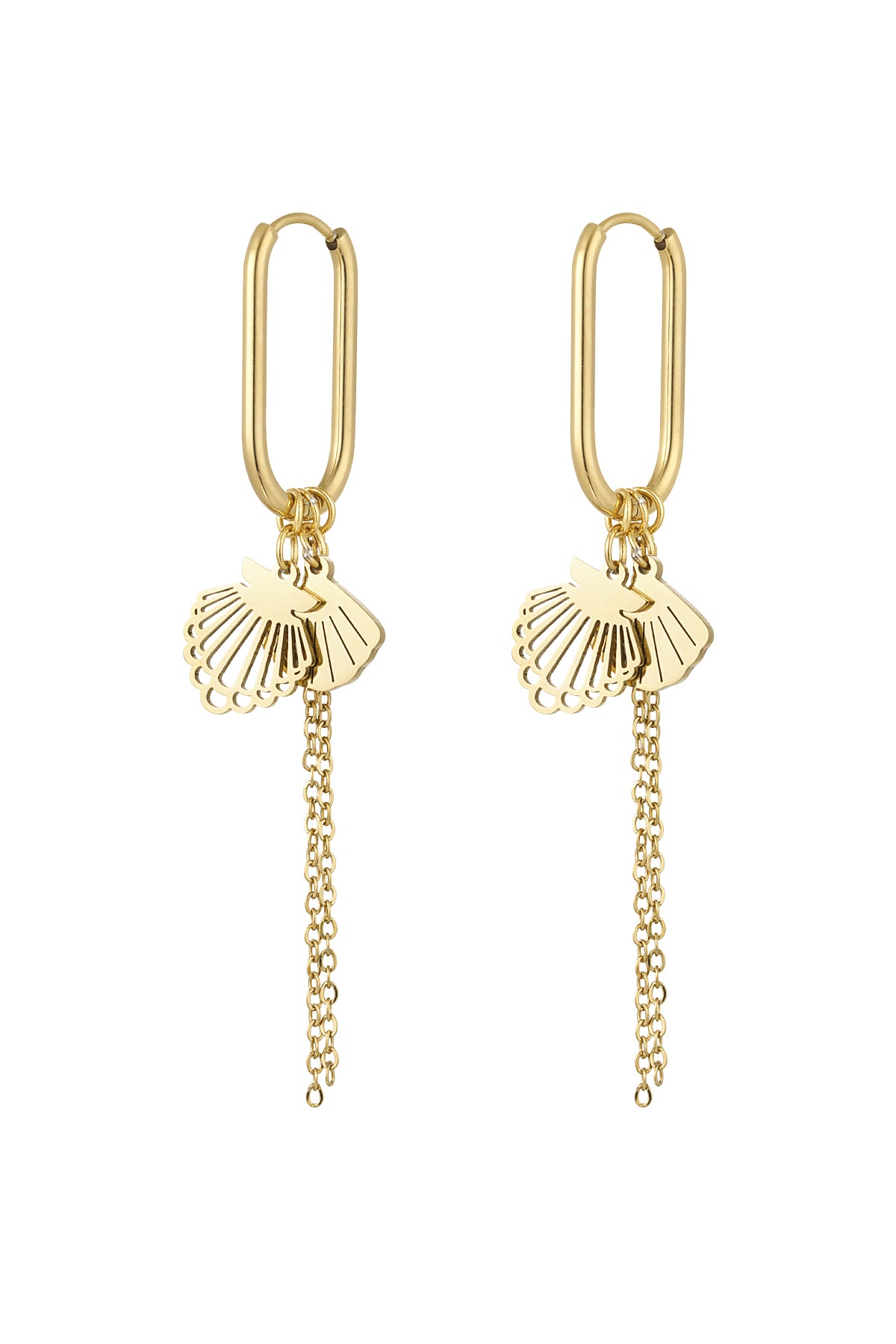 Goudkleurige oorbellen met speelse schelpbedels en verfijnde kettinkjes een zomerse eyecatcher vol elegantie!