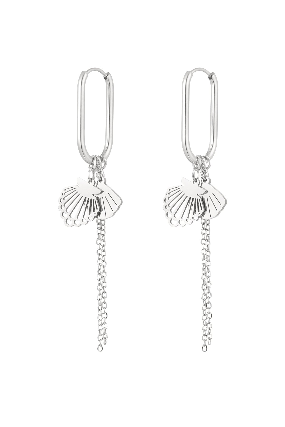 Zilverkleurige oorbellen met schelpbedels en sierlijke kettinkjes een elegante touch met een speelse twist!