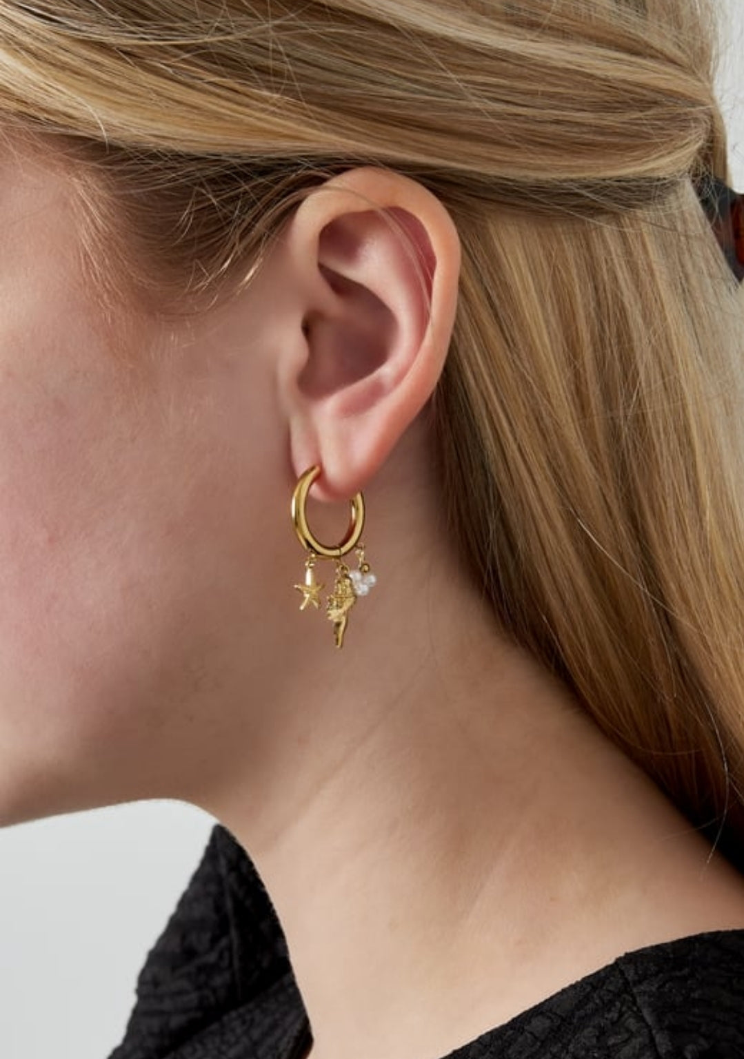 Goudkleurige oorbellen met schelp, zeester en pareltjes tropisch en stijlvol voor een zomerse look!